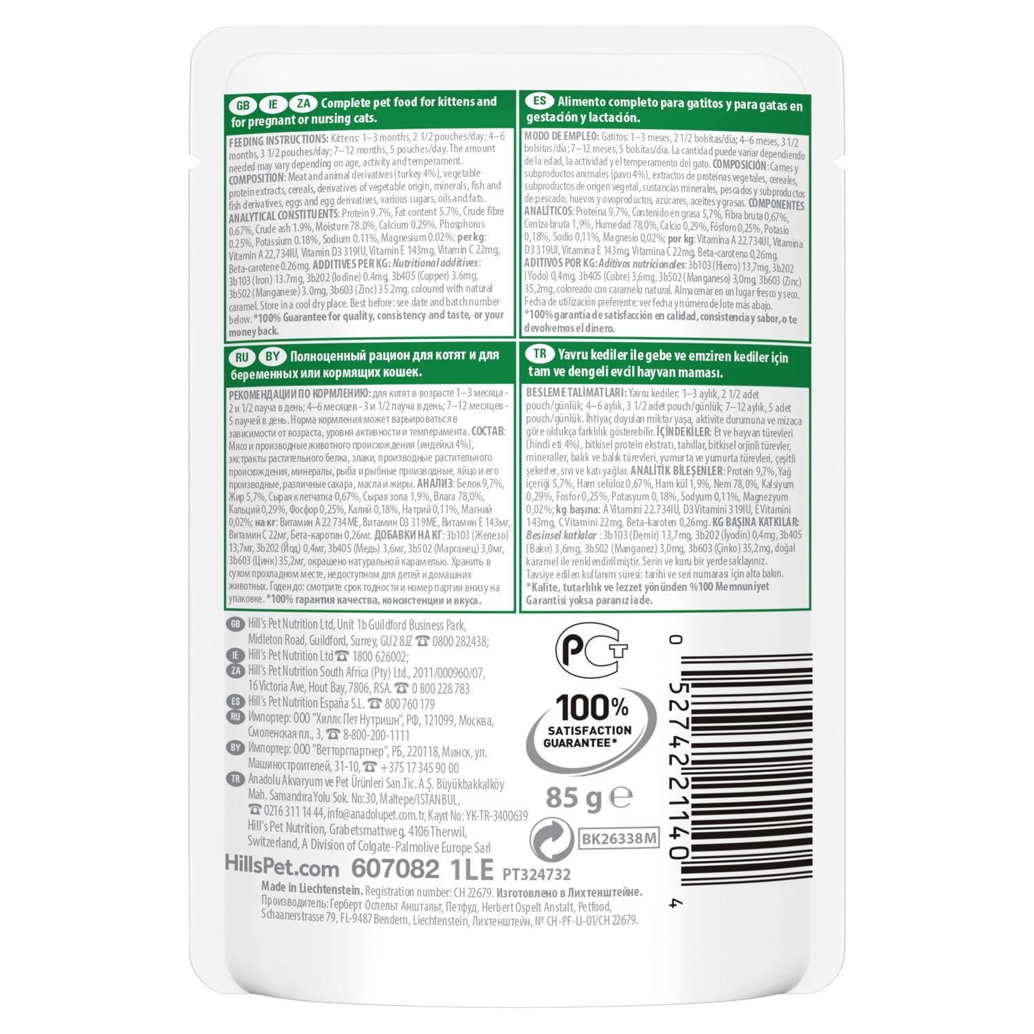 Nourish your kitten’s growth with Hill’s Science Plan Kitten Wet Food – Turkey Pouch. Specially designed for kittens under 12 months, as well as pregnant and nursing cats, this complete wet food delivers balanced nutrition in a soft, tasty turkey recipe.