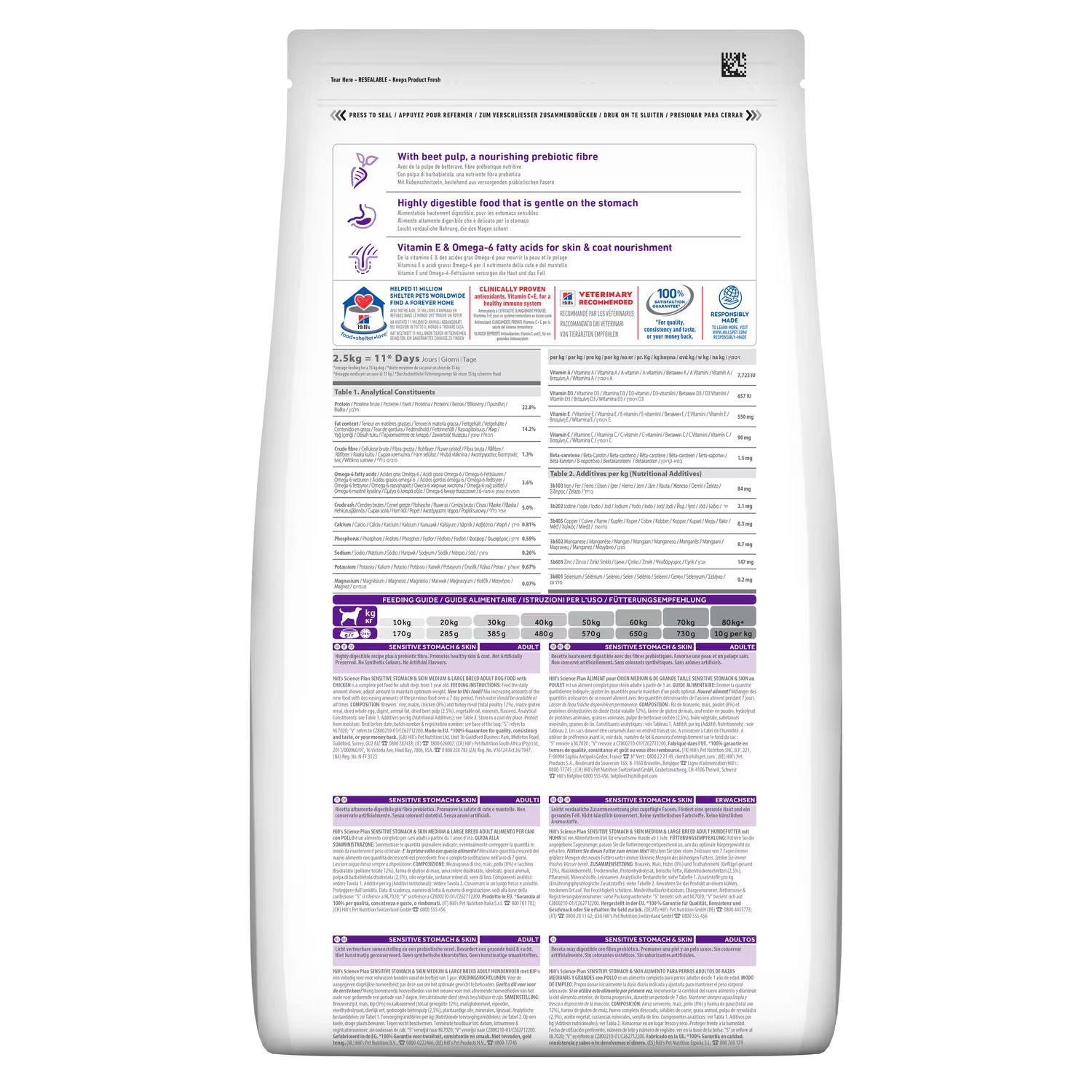 Support your medium or large breed adult dog with Hill’s Science Plan Sensitive Stomach & Skin Medium & Large Adult Dog Food. This premium dry food is gentle on digestion, enriched with beet pulp prebiotic fiber, and formulated with clinically proven nutrients to nourish the skin and coat. With Vitamin E and Omega-6 fatty acids, it helps maintain healthy digestion, joint health, and a lustrous coat, making it ideal for adult dogs 1+ years of age with sensitive stomachs or skin.