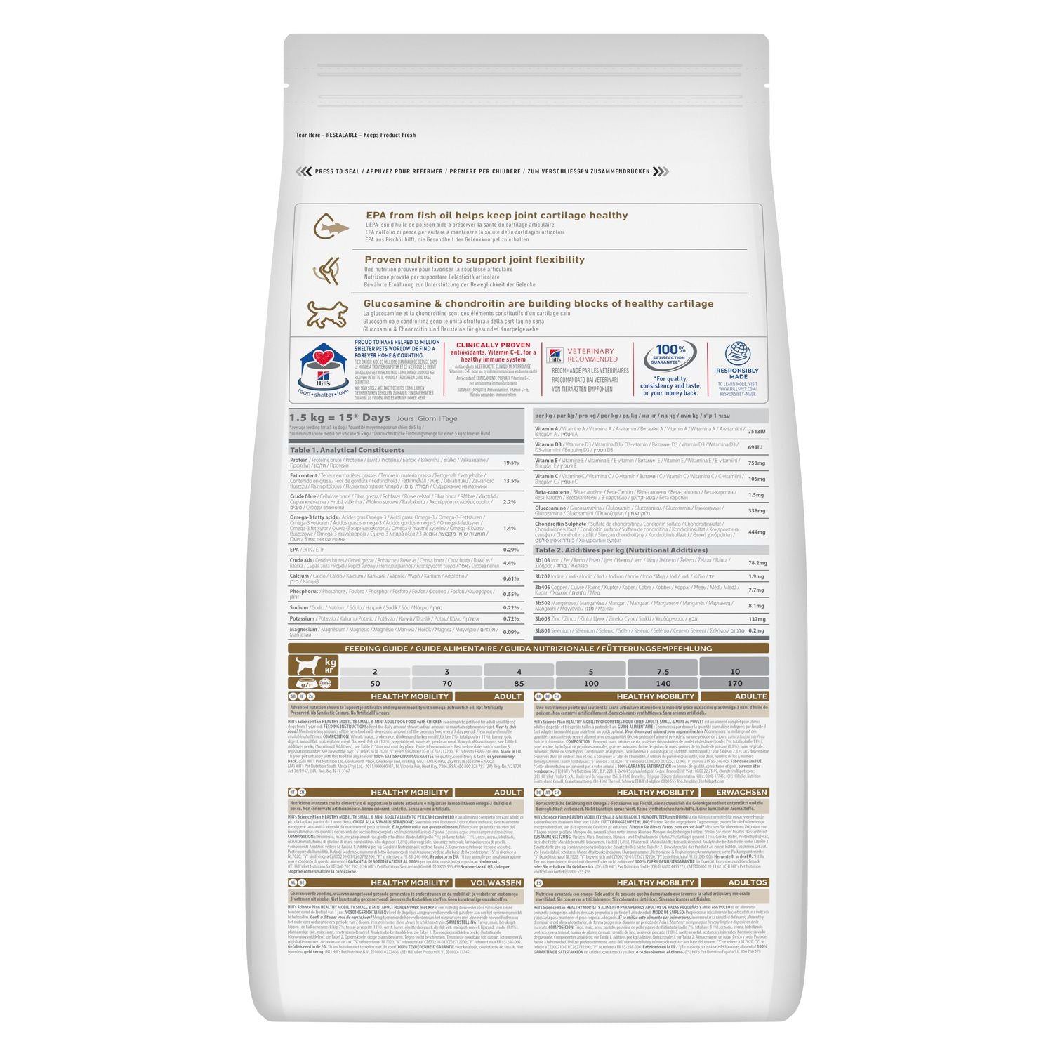 Support your small or miniature breed adult dog’s healthy weight and joint health with Hill’s Science Plan Perfect Weight & Active Mobility Small & Mini Adult Dog Food – Chicken. Specially formulated for dogs 1+ years prone to weight gain or mobility concerns, this premium dry food features high-quality protein for lean muscle, balanced calories to maintain healthy weight, and clinically proven nutrients for joint and mobility support. With omega-6 fatty acids and vitamin E, it also promotes a healthy coat and skin, keeping your small dog active and healthy.